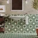 Le vert d' »Izmir Olive » capte la vitalité et la fraîcheur de la nature, intégré harmonieusement sur une base douce de texture « Brighton Base ». Ce choix de design transforme les sols et les murs en œuvres d’art, offrant un style à la fois rustique et contemporain.