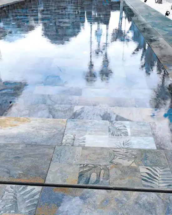 Ce carrelage utilise une technologie unique permettant à celui-ci d’être utilisé en intérieur ainsi qu’en extérieur en effet il devient antidérapant R11 au contact de l’eau !