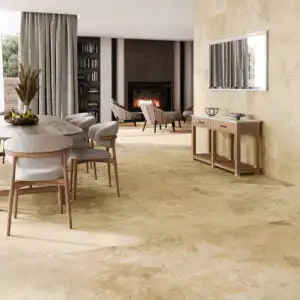 Decor d'un salon avec au sol l'Imitation travertin Izmir 60x120